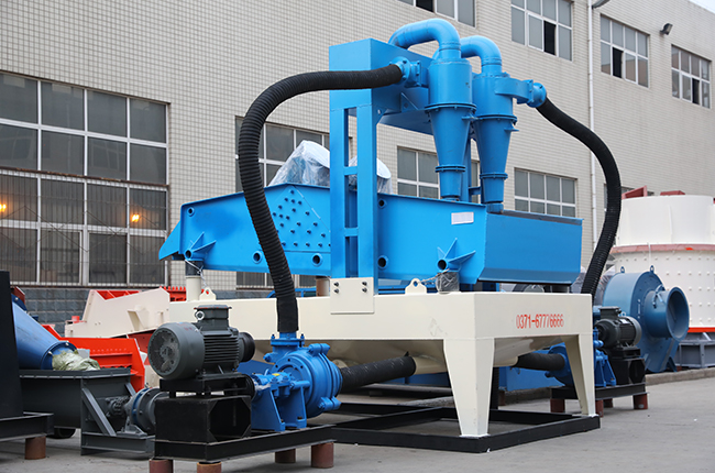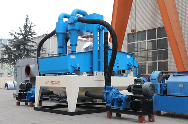 細沙回收機通過渣漿泵將濃度≤40%的泥漿注入水力旋流分離器進行分離,分離出的粗粒部分進入脫水篩脫水回收。最大限度的回收0.075mm以上的材料,去除0.075mm以下的污泥和黏土,可以與現有生產線上的洗砂機配套使用,也可以單獨使用,提升資源利用率, 實現收益最大化。分離出的粗粒部分進入脫水篩脫水回收。最大限度的回收0.075mm以上的材料,去除0.075mm以下的污泥和黏土,