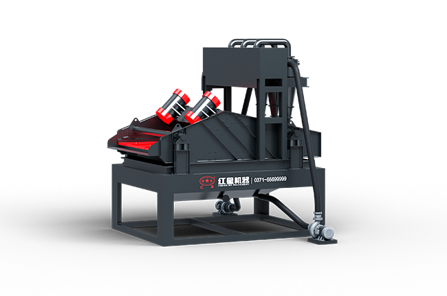 砂水混合物進入清洗箱,由葉輪分離機進行分離,然后進入下層脫水篩做脫水處理,清洗箱溢流出的廢水(含大量細砂、泥漿、粉塵等雜質),經真空高壓泵輸送到高壓分離器中,然后離心分濃縮后的細沙,經沉沙嘴排入脫水篩上層,清洗箱內的廢水、泥、粉塵、雜質等,通過高壓分離器溢流口,排入高位返水箱后排出,上層出成品料粗砂,下層出成品料細砂,或粗、細砂混合。