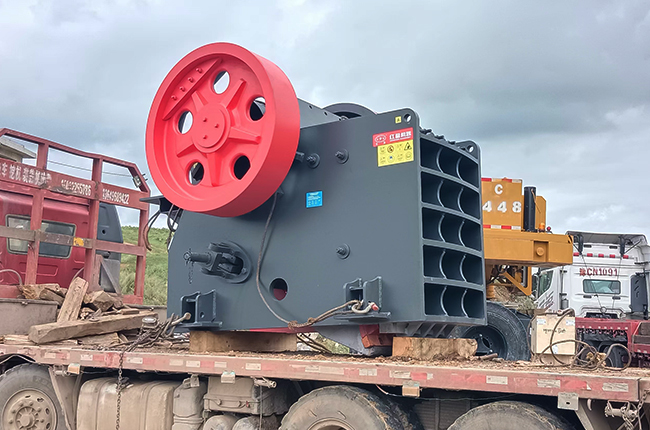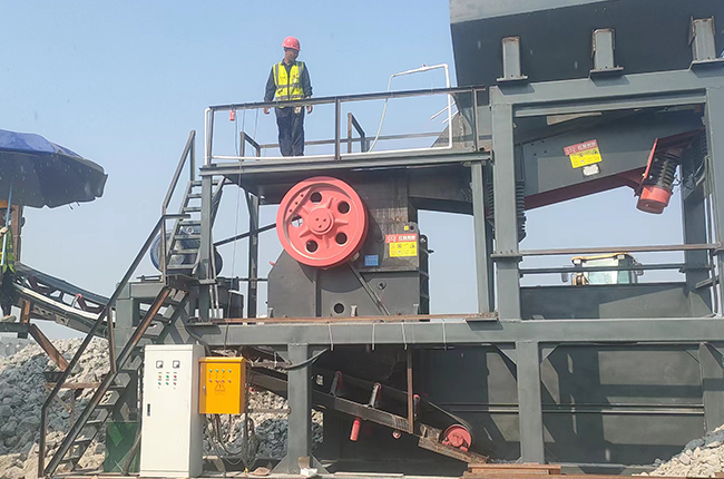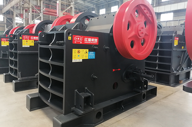 電動機驅動皮帶和皮帶輪,通過偏心軸使動顎上下運動,當動顎上升時,肘板與動顎間夾角變大,從而推動動顎板向固定顎板接近,與次同時,物料被壓碎或劈碎,達到破碎的目的;當動顎下行時,肘板與動顎夾角變小,動顎板在拉桿、彈簧的作用下,離開固定顎板,此時已破碎物料從破碎腔下口排出。隨著電動機連續轉動而破碎機動顎作周期運動壓碎和排泄物料,實現批量生產。