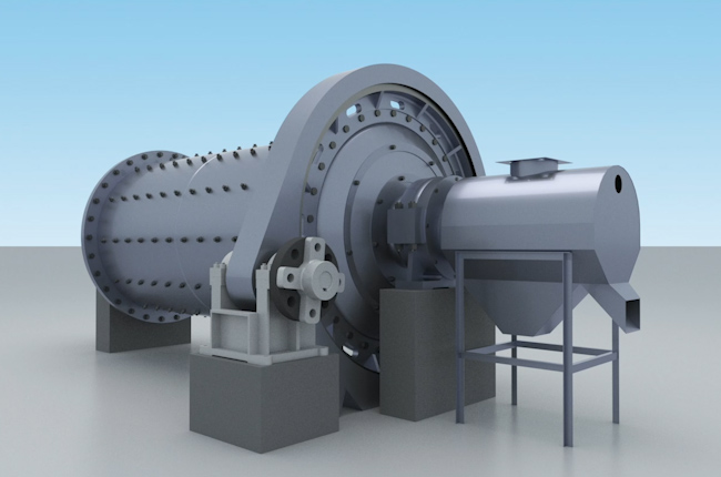 物料由進料裝置經入料中空軸螺旋均勻地進入磨機第一倉,該倉內有階梯襯板或波紋襯板,內裝不同規格鋼球,筒體轉動產生離心力將鋼球帶到一定高度后落下,對物料產生重擊和研磨作用;物料在第一倉達到粗磨后,經單層隔倉板進入第二倉,該倉內鑲有平襯板,內有鋼球,將物料進一步研磨;粉狀物通過卸料箅板排出,完成粉磨作業。